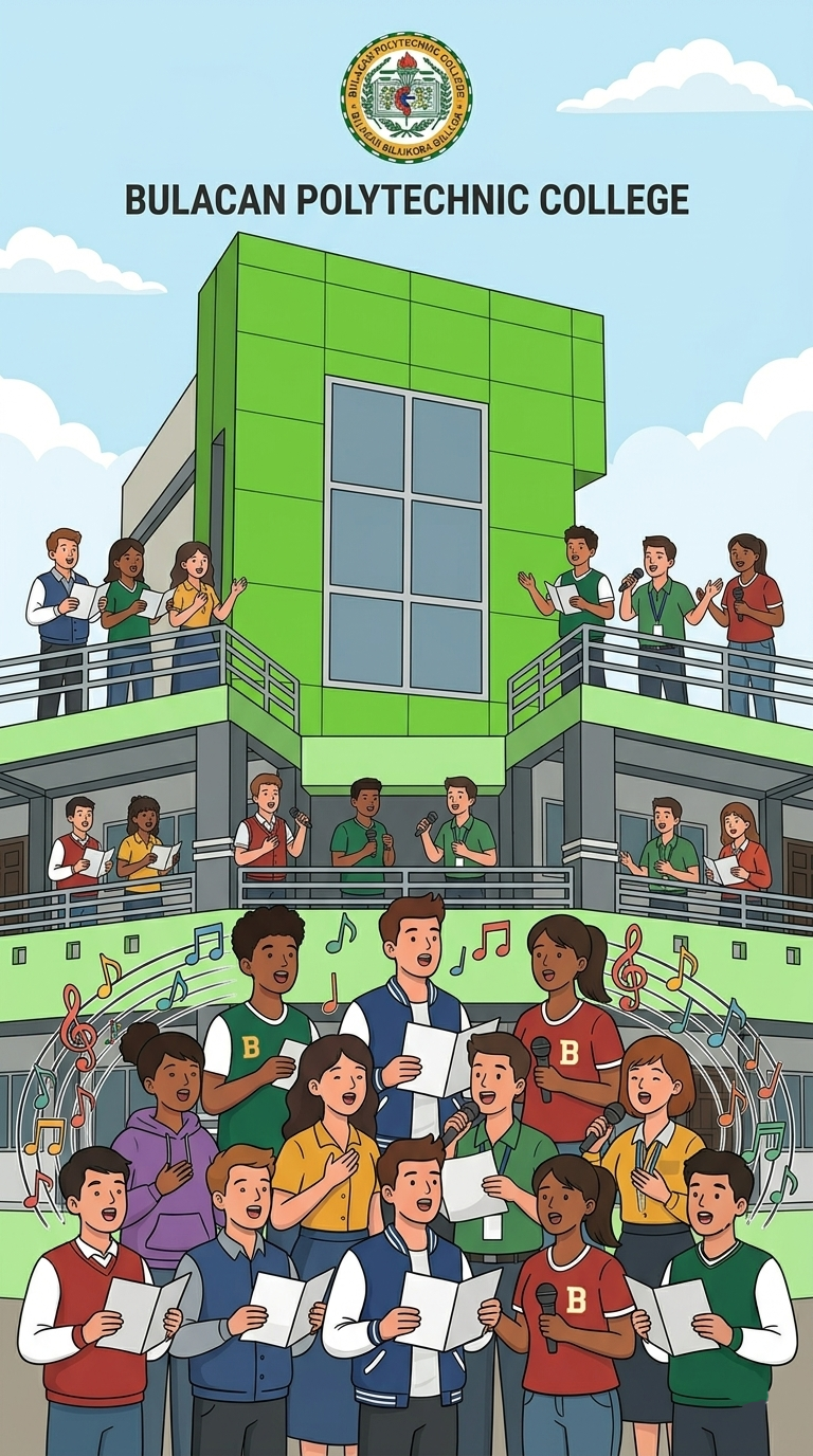 Papuri at paghanga'y taglay, sa Matiyagang guro't magulang Kailan ma'y bukas ang isipan Sa paghubog ng ating mga murang kaisipan Bulacan Polytechnic College, may Sariling pagkakakilanlan Una'y paglilingkod sa kapwa at sa bayan Natamong karangalan sa'yo iaalay Sa'yo iaalay Sa'yo iaalay...